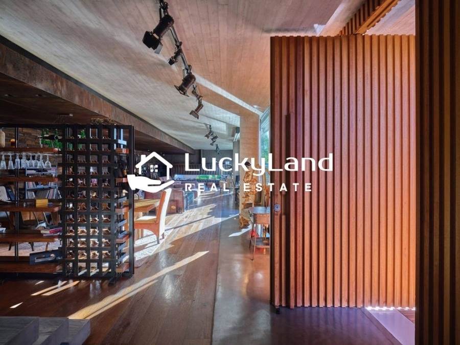 Αυτό είναι ένα σπίτι με ανεξήγητη δύναμη και προσωπικότητα.Πραγματικά συναρπαστικό με έναν μοντέρνο, jazzy vintage χαρακτήρα θα λατρέψει για την σίγουρη, γοητευτική και καλλιτεχνική του ατμόσφαιρα. Το ακίνητο βρίσκεται στο Νότιο Ελληνικό, το οποίο είναι ευρέως γνωστό ως η περιοχή που θα φιλοξενήσει το σημαντικότερο έργο αστικής ανάπλασης στην Ευρώπη, σχεδιασμένο να προσθέσει σημαντικές νέες επενδύσεις σε όλους τους επιχειρηματικούς τομείς.Η ενιαία κατοικία 1180 τ.μ. διαθέτει γεωμετρική ευέλικτη αρχιτεκτονική και εκτείνεται σε τέσσερα επίπεδα. Οι ευρύχωροι εξωτερικοί του χώροι διαθέτουν μια τεράστια ορθογώνια πισίνα που συμπληρώνει τέλεια το γύρω πράσινο, την τραπεζαρία, το υπαίθριο γυμναστήριο και το μπάρμπεκιου.Η βίλα είναι διακοσμημένη με ένα εκλεκτικό μείγμα επίπλων με επιρροές από τα έπιπλα της δεκαετίας του '70 και των μέσων του αιώνα, ενώ υπάρχουν αρκετά σημεία που αναδεικνύουν το πάθος του ιδιοκτήτη για την τέχνη και τη μουσική. Οι εσωτερικοί χώροι διαθέτουν μια παλέτα γκρι και καφέ αποχρώσεων, ταπετσαρίες από καφέ δέρμα και ξύλινες λεπτομέρειες, έπιπλα που δημιουργούν μια ζεστή και χαλαρωτική ατμόσφαιρα. Αντικείμενα όπως το αντίκα μαύρο πιάνο του 19ου αιώνα, μια γνήσια μοτοσυκλέτα BMW του 2ου WW ή η εντυπωσιακή συλλογή πολύχρωμων κιθάρων, θα σας μαγέψουν!Υπάρχει ένα ευρύχωρο σαλόνι και κουζίνα με ένα εντυπωσιακό κέντρο νησί. Ένας ειδικός χώρος μελέτης/γραφείου που συνδέεται με το ισόγειο μέσω μιας σκάλας από σκυρόδεμα και μια ιδιωτική αίθουσα ψυχαγωγίας με δικό της μπαρ, μπιλιάρδο, σάουνα και ξεχωριστό καθιστικό έρχονται να ολοκληρώσουν αυτό το σπάνιο ακίνητο. Άξιο αναφοράς είναι ο γυάλινος ανελκυστήρας που συνδέει όλα τα επίπεδα και το υπερσύγχρονο γκαράζ.Η βίλα μπορεί να φιλοξενήσει έως και δέκα άτομα στα πέντε υπνοδωμάτιά της, δύο από τα οποία ανοίγουν σε μεγάλες βεράντες. Highlight: ένα master υπνοδωμάτιο 140 τ.μ που λούζεται από φυσικό φως. Όλος ο χώρος των master υπνοδωματίων έχει θέα 180°, όπως και ο ξεχωριστός χώρος του τζακούζι.Το ακίνητο δημιουργεί μια αίσθηση ιδιωτικότητας και προστασίας από έξω και σας καλωσορίζει να απολαύσετε μια εμπειρία μακριά από το σπίτι όλο το χρόνο.