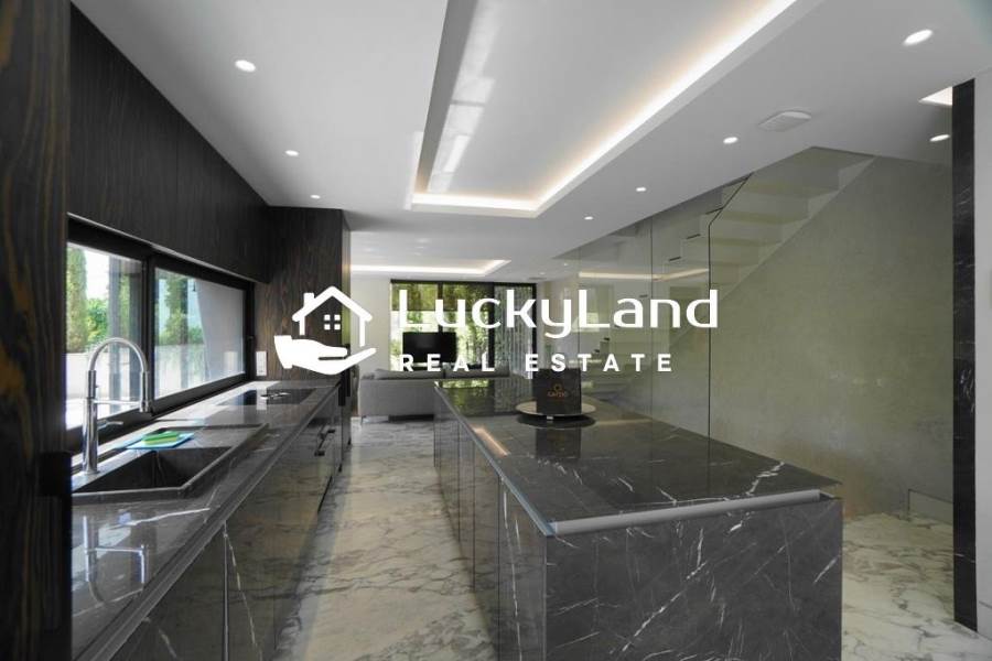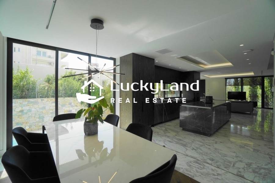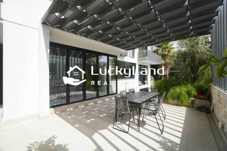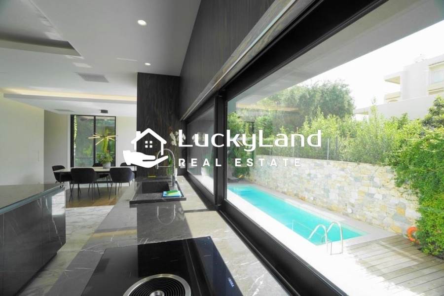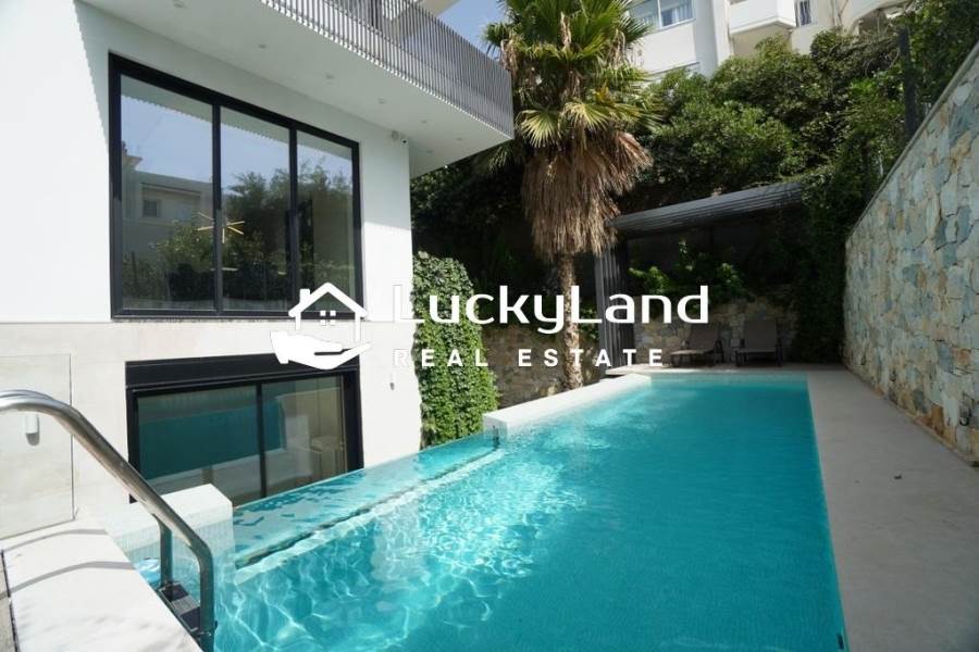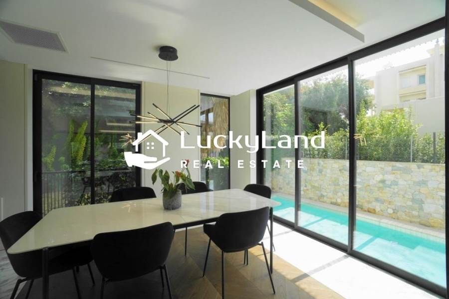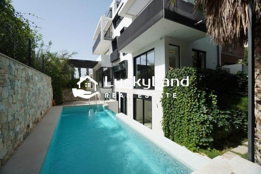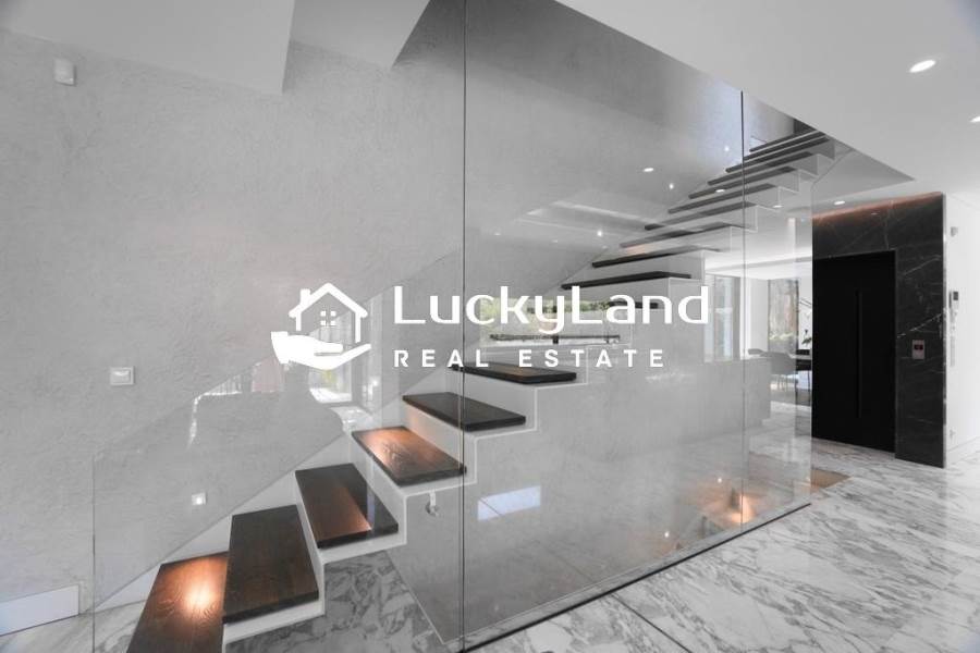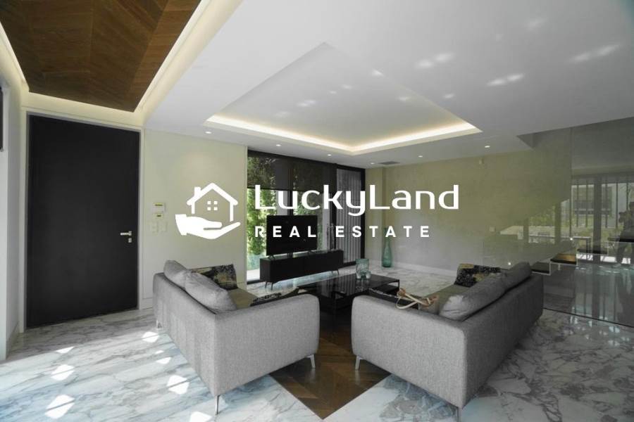 Voula, Maisonette For Rent, 365 sq.m., Property Status: Minimal Design, Floor: Ground floor, 4 Level(s), 4 Bedrooms View: Good, Energy Certificate: A+, Floor type: Granite, Type of door frames: Aluminum, Features: Security door, Night stream, Satellite Receiver, Cable TV, Internet Line, Electric Appliances, Playroom, Internal Staircase, Double Glazed Windows, Window Screens, Balconies, Pets Allowed, Furnished, Luxury, Airy, Roadside, Bright, AirConditioning, Solar water system, Boiler, Trees, Swimming pool, Back yard (Garden), Painted, Renovated, Price: 15.000€. LuckyLand, Tel: 6932759898, email: nlikitsakos@gmail.com
