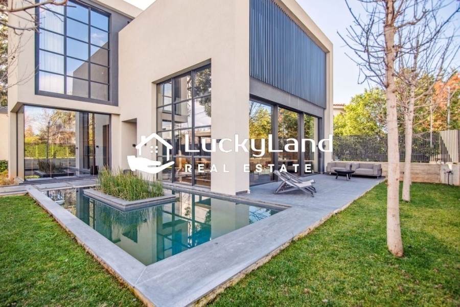 Kifissia, Kato kifissia, Detached house For Sale, 330 sq.m., In Plot 500 sq.m., Property Status: Minimal Design, Floor: Ground floor, 1 Level(s), 4 Bedrooms (4 Master), 1 Kitchen(s), 4 Bathroom(s), Heating: Autonomous - Natural Gas, View: Good, Building Year: 2023, Energy Certificate: A+, 2 parking(s), Type of door frames: Aluminum, Features: Security door, Security alarm, CCTV, Storage room, Fireplace, Night stream, Satellite Receiver, Cable TV, Internet Line, Electric Appliances, Playroom, Double Glazed Windows, Window Screens, Balconies, BBQ, Pets Allowed, Furnished, Luxury, Airy, Roadside, Bright, Underfloor, AirConditioning, Solar water system, Boiler, Trees, Swimming pool, Back yard (Garden), New Construction, Price: 2.000.000€. LuckyLand, Tel: 6932759898, email: nlikitsakos@gmail.com