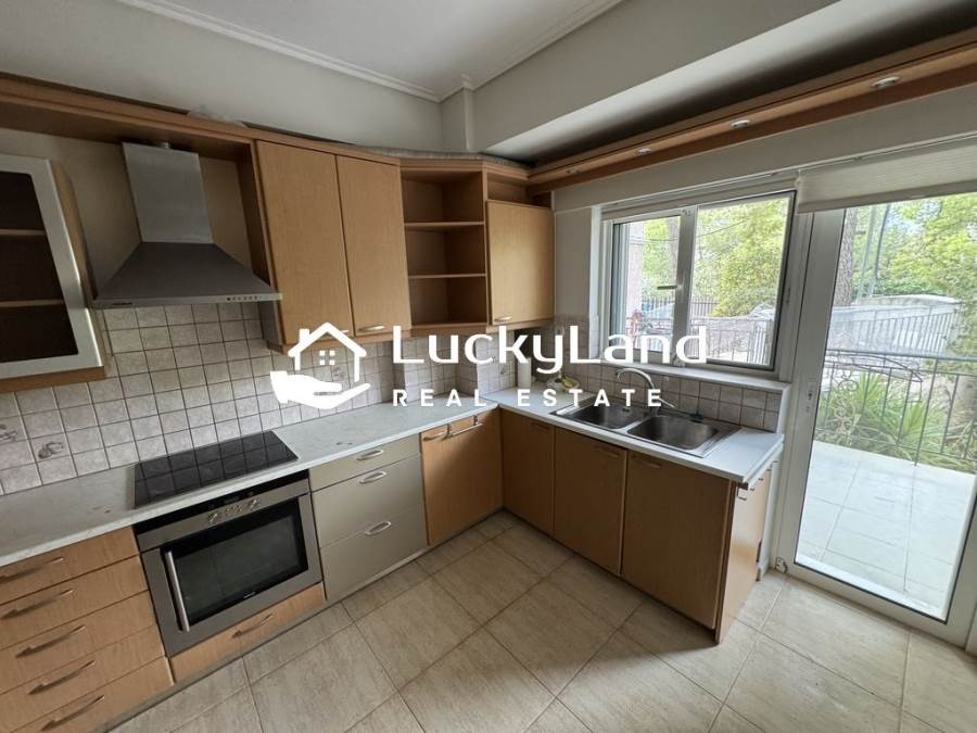 Melissia, Apartment For Rent, 135 sq.m., Property Status: Very Good, Floor: Ground floor, 1 Level(s), 4 Bedrooms 1 Kitchen(s), 1 Bathroom(s), Heating: Autonomous - Petrol, View: Unlimited, Building Year: 2005, Energy Certificate: D, 1 parking(s), Floor type: Wooden floors + Tiles, Type of door frames: Aluminum, Features: Elevator, Security door, CCTV, Storage room, Fireplace, Electric Appliances, Double Glazed Windows, Window Screens, Balcony Cover, Balconies, Pets Allowed, Luxury, Airy, Roadside, Bright, AirConditioning, Solar water system, Back yard (Garden), Painted, Renovated, Price: 1.190€. LuckyLand, Tel: 6932759898, email: nlikitsakos@gmail.com