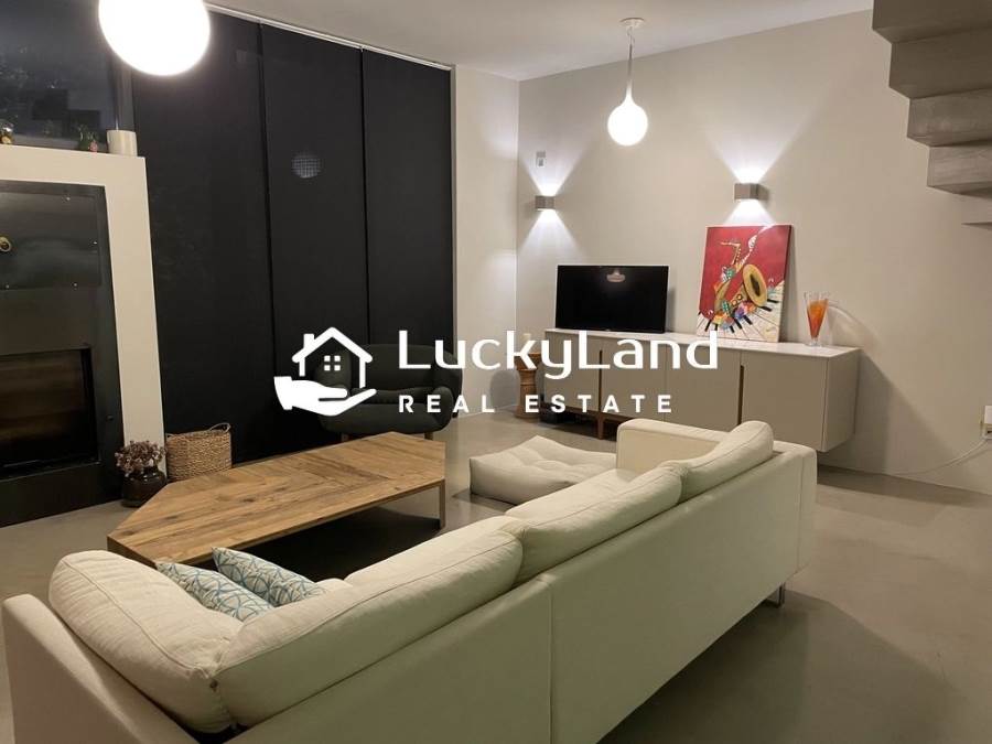 Marousi, Alsos Ktimatos Siggrou, Apartment For Rent, 140 sq.m., Property Status: Minimal Design, Floor: Mezzanine, 2 Level(s), 2 Bedrooms 1 Kitchen(s), 2 Bathroom(s), Heating: Autonomous - Electricity, View: Mountain View, Energy Certificate: D, Floor type: Wooden floors, Type of door frames: Aluminum, Features: Security door, Security alarm, CCTV, Storage room, Fireplace, Night stream, Satellite Receiver, Cable TV, Electric Appliances, Internal Staircase, Triple Glazed Windows, Window Screens, Balcony Cover, Balconies, Furnished, Luxury, Airy, Roadside, Bright, AirConditioning, Solar water system, Boiler, Back yard (Garden), Price: 2.100€. LuckyLand, Tel: 6932759898, email: nlikitsakos@gmail.com